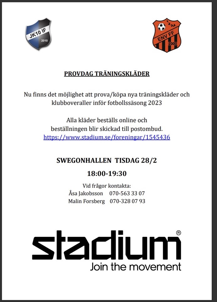 28/2 är ni välkomna till Swegonhallen för prova/köpa nya träningskläder och klubbkläder inför fotbollssäsongen 2023! P-14-16 18 feb 2023 0kommentarer